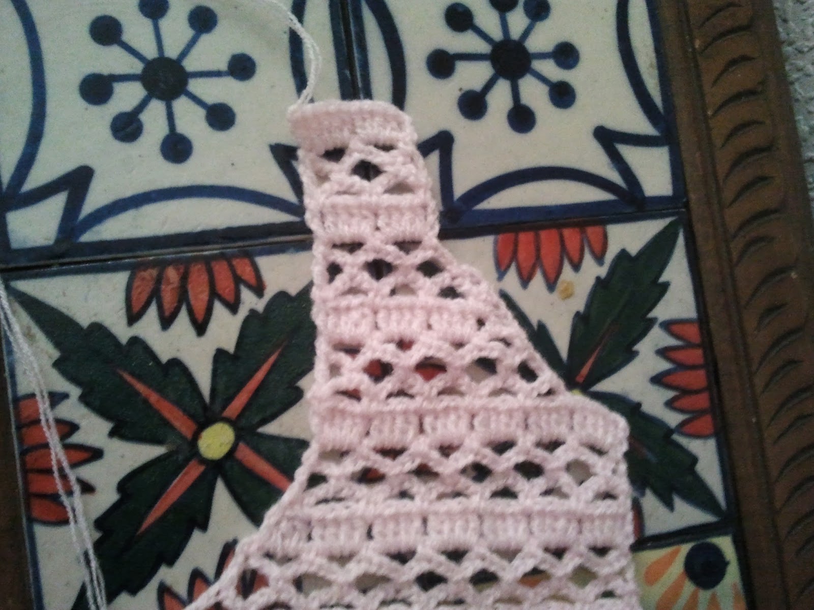 Bueno, pues yo , en la primera versión utilicé un perlé del n. 8 y una aguja finita y se hizo gigante, desproporcionado. No tengo foto porque lo guarde un día que recibí visita sorpresa y con las prisas, no se dónde lo escondí jajaja, bueno ya aparecerá.